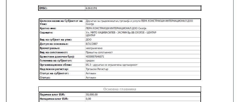 Internacional doo Skopje”, si dhe kompania orvegjeze “Small Business Association of Norëay (SNS)”. Kompania e regjistruar në Shkup e që përfaqësonte kapitalin turk, në bazë të dokumenteve të siguruara nga regjistri Qendror i Maqedonisë, është pronë e biznesmenit turk